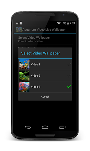 Video live wallpaper with 3 different realistic aquariums and aquarium fishes.