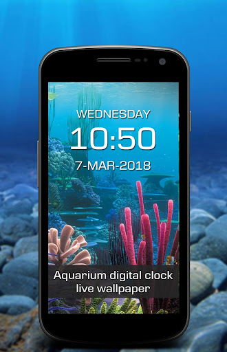 Aquarium digital clock with under water life using Aquarium Digital Clock Live Wallpaper.