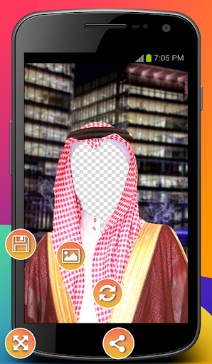Arab Saudi Photo Montage app lets you try on different suits and check on yourself. Just a single click and you can try wide variety of suits on you. Arab Saudi Photo Montage lets you add suits to the pictures either from gallery or the camera.
