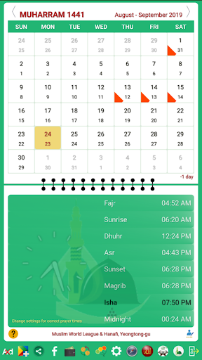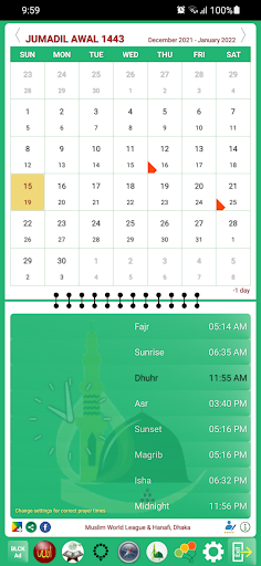 This app is a dual calendar of Hijri and Gregorian (English) dates. Along with the dual dates, users get the daily Muslim prayer times from this app. In addition, the app has following features that help the Muslims to perform their Islamic activities -