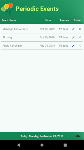 - Set event reminders for birthday, anniversary, pubic hair-shave, etc.