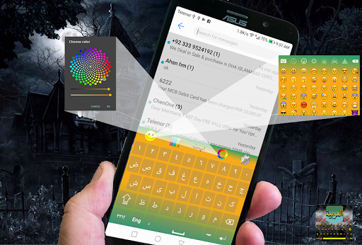 Arabic language keyboard has various kinds of Arabic input text sentences of Arabic language. Arabic typing keyboard has vast number of Arabic language sentences. Arabic has many different emoji keyboard features to support emojies. Arabic keyboard English to Arabic supports Arabic and English typing in same Keyboard. Arabic typing is considered as best Arabic keyboard with custom color background feature. Arabic words are being put in the keyboard and implemented with proper Arabic daily used Arabic grammar.