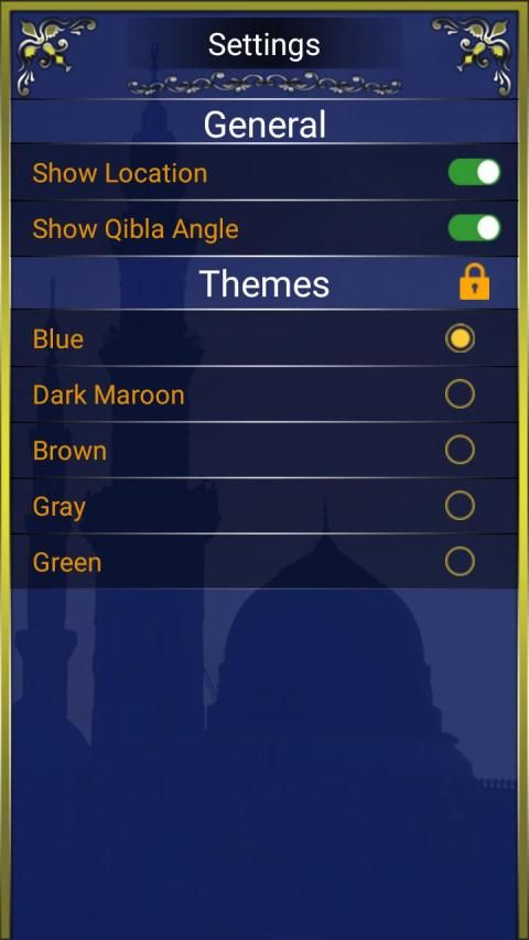 You can use all of the existing themes and delete the existing ad at the bottom of Qibla compass directions by clicking on the link "Remove Ad" or click on the logo Key Lock in the Settings menu.