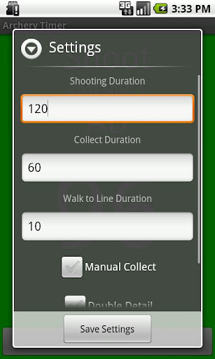 Walk To Line Duration: The number of seconds given to walk to the line(FITA standard 10 seconds)