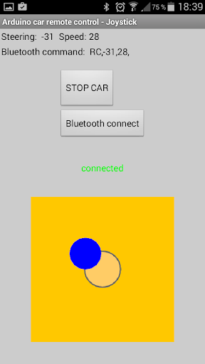 Sends commands for speed and steering over serial bluetooth connection to an Arduino