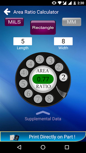 You can calculate the Area ratio for Rectangle, Square and Round shapes.