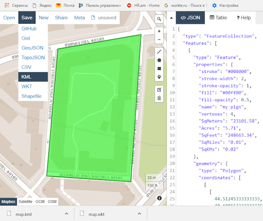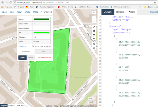 . This format you can easily visualize on map and customize by http://geojson.io online tool and edit or convert into other formats: KML, WKT, TopoJSON. By other online tools you can also merge multiple JSON files into one file.