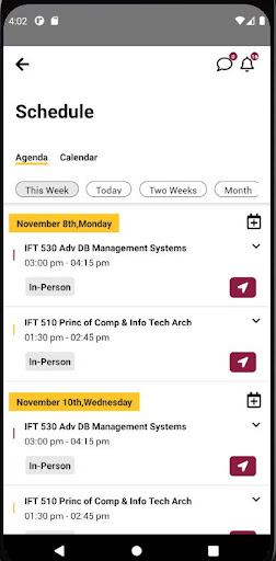 Add ASU and student club events to your schedule, complete with check-in and wayfinding abilities