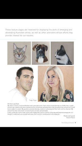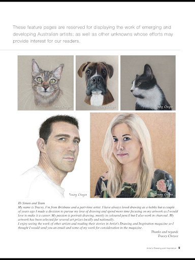 ARTIST'S DRAWING & INSPIRATION magazine seeks to showcase the works of talented Australians producing art at a whole range of skill levels, whether they are accomplished creative people with a long history of achievements or beginners (of all ages) striving to build their identities and reach their particular artistic goals.