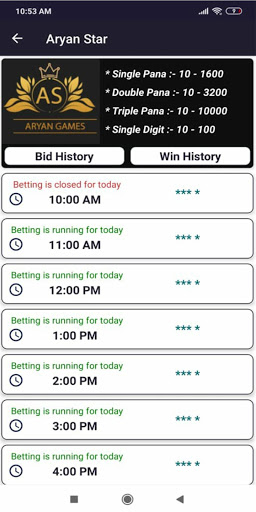 Aryan star is best satta-matka app , you can guess multiple type of games in this application, main market, aryan starline, single digit, jodi and many more
