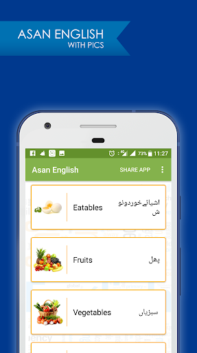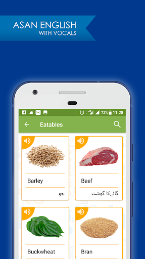 Asan English in Urdu gives you English translations along with audio and images. Ab seekhain English Urdu zaban mein! With more than 1200 words, this app is an epic. It teaches English for Pakistani and Indian audience. It is very good for those who wants to practice IELTS / TOEFL vocabulary.
