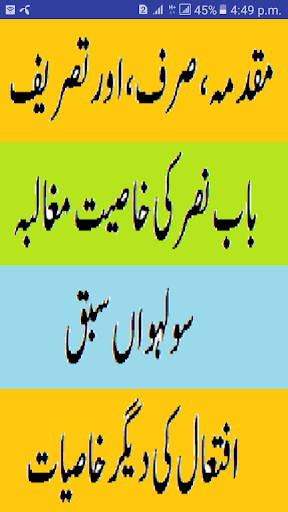 There are many abwab in ilm us sarf and other sarf books. They are complicated to memorize and understand because of being in Arabic language. This App disclose their meaning in urdu, so it became simpler to pick