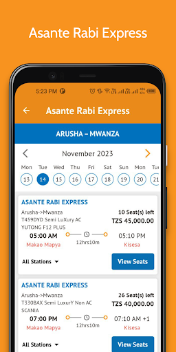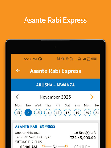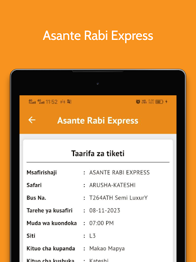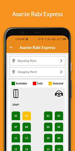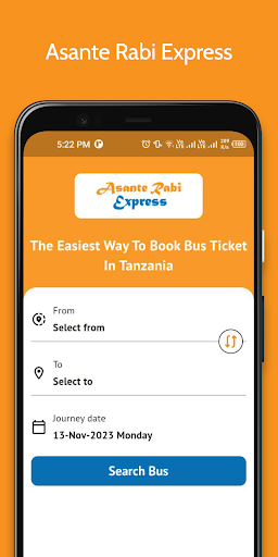 Asante Rabi Express bus ticketing system on your mobile. Book your tickets with simplicity from your phone.