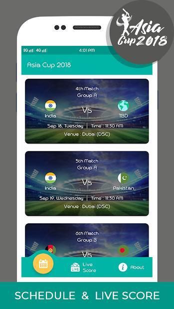- Displays Daily update Asia Cup Schedule with Live Score Update when respective match starts