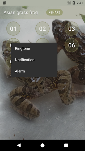 The Asian grass frog sound listen to relax and set as ringtone, notification and alarm.