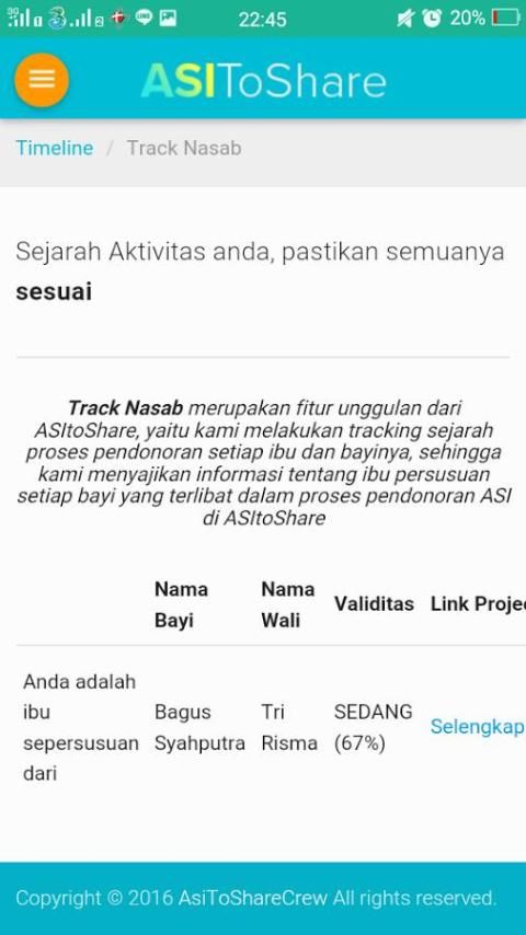 ASI TO SHARE merupakan sebuah aplikasi marketplace berbasis android dan website yang dapat mempertemukan seorang ibu yang membutuhkan ASI untuk bayinya dan seseorang yang dapat memberikan ASI secara cepat, aman, dan mudah. Cepat karena seluruh akses aktifitas permintaan dan penawaran donor ASI dapat dilakukan secara realtime. Aplikasi ini aman karena rekapan record nasab yang selama ini menjadi permasalahan sudah terdokumentasikan dalam database sistem secara baik. dan mudah karena akses dari aplikasi ini dapat di akases melalui mobile apps dan webiste dengan tampilan yang menarik dan mudah pahami.