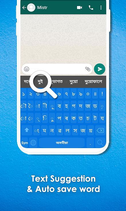 Assamese english keyboard for whatsapp typing. English, Assamese keyboard with emoji is literally filled with maximum colored background themes and keypad skins with emojis and smileys. Bengali offline keyboard works completely without internet availability.