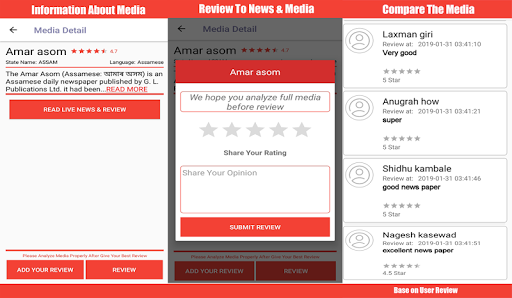 App Is providing the user review audit and rating system, User Can Upload the media and News and others will provide his opinion and rating on News and media with the rating.