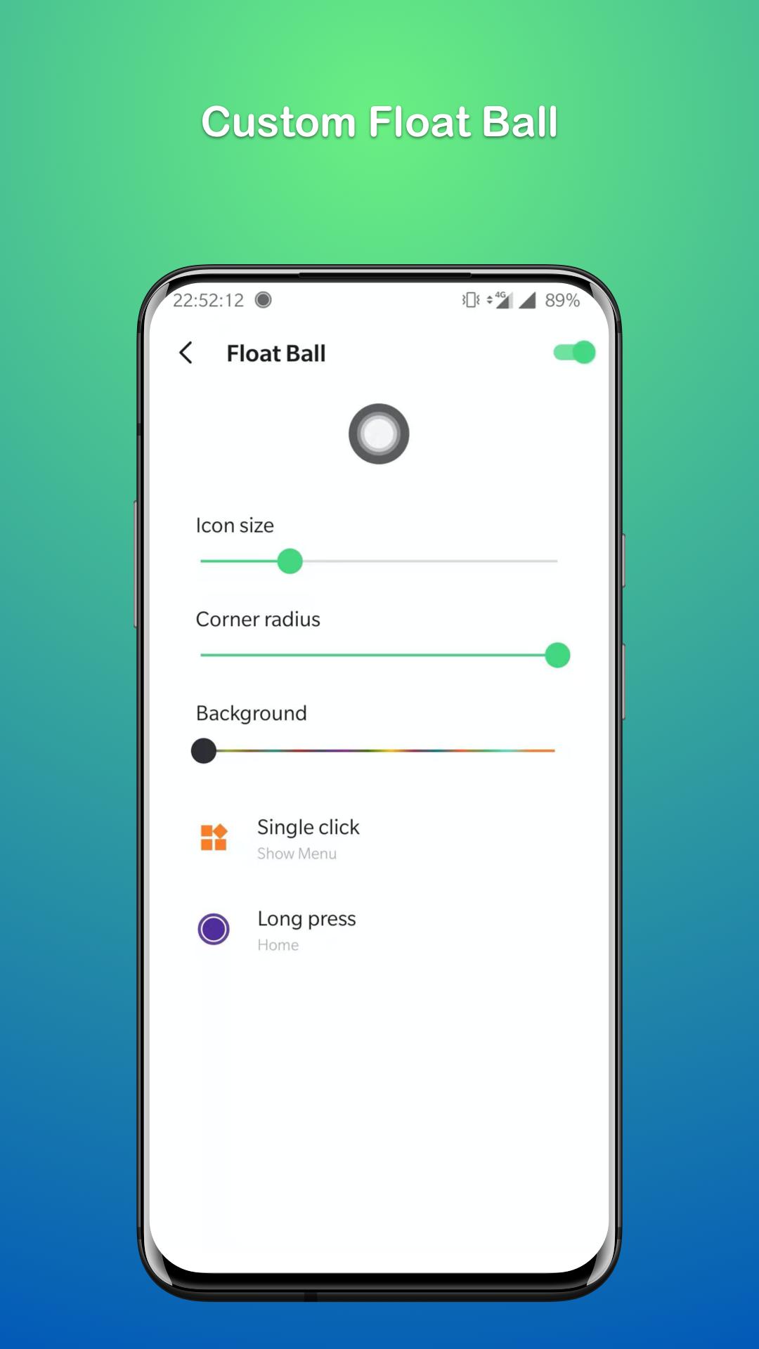 you can quickly access almost all apps, games, settings on your device, and if you do not like the global floating ball, just disable it and use the feature "Screen Edge Gestures"