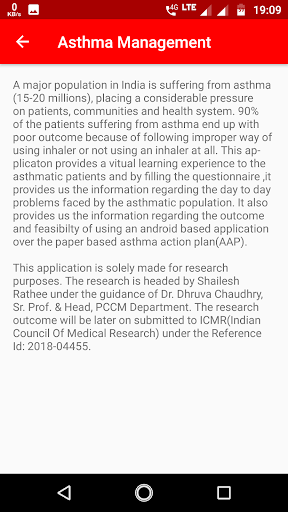 A major population in India is suffering from asthma (15-20 million), placing a considerable pressure on patients, communities and health system. 90% of the patients suffering from asthma end up with the poor outcome because of following improper way of using an inhaler or not using an inhaler at all. This application provides a visual learning experience for the asthmatic patients and by filling the questionnaire, it provides us the information regarding the day to day problems faced by the asthmatic population. It also provides us the information regarding the outcome and feasibility of using an android based application over the paper-based asthma action plan(AAP).