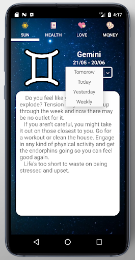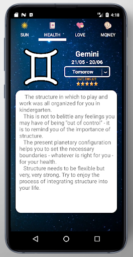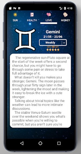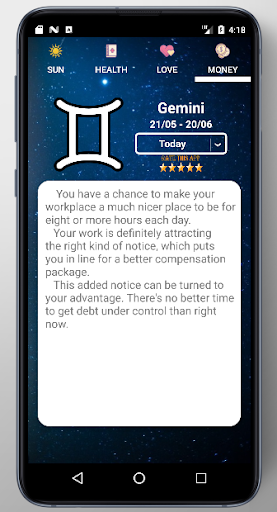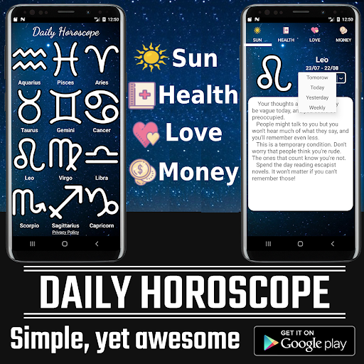 Daily Horoscope and Astrology provides the most accurate and uniques daily horoscope forecasts for free in 2020 for each of the zodiac signs. One of the features that make our app the best one from the multitude of horoscope apps free is that you can check everyday the prediction for today, tomorow and the entire week for multiple life aspects: