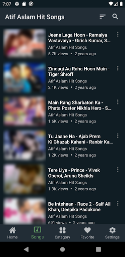 In Atif Aslam Hit songs app one can easily bookmark their favorite Atif Aslam song and then watch them later by going to favorites section from the navigation bar.