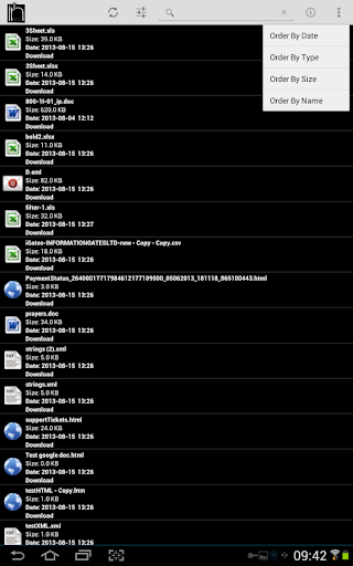 Including filtering by type and search result ordering by: date, type, size, name