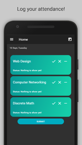 Tracking your attendance is super easy with Attend It. You can log your attendance from other devices as well, apart from Android.
