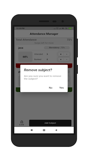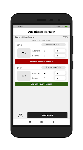 Attendance Manager was engineered with the purpose to assist students of assorted academic sectors to stay in track of their attendance and manage time for their plans.