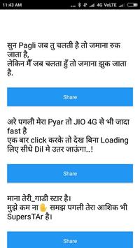 If you want to show your attitude to your social friends,you are on right page. app contain huge variety of status a and sms in Hindi. App doesn't require internet,without internet service users can use app.users can share sms and quotes to different social medium.