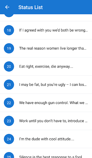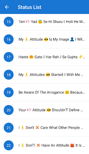 This App have the best collection of attitude Status in Hindi & English. Which help you to show your attitude and style with emojis with Attitude Status - Latest Best Status 2021 by setting them as your facebook status or WhatsApp status. 😎