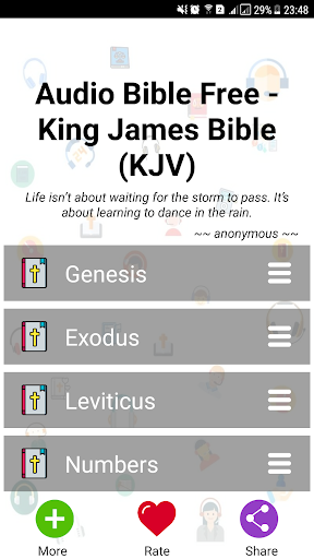 This Audio Bible Free App contains the 66 books of the Old Testament and New Testament, providing an easier way to feel God’s word in your heart and to feel heaven closer to you and your loved ones. Carry your KJV Bible wherever and whenever you want to help enlighten your mind with the most complete, fast and easy to use daily Bible App on Google Play.