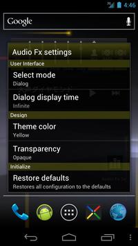 AudioFx Widget is a widget that can be applied audio effects to audio output on your multimedia player.