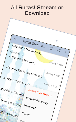 * If file is downloaded, the app will serve the audio file directly from your device (no internet connection needed)