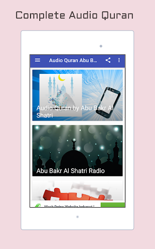 This App contains the complete Qur'an Karim in High Quality MP3 audio by the famous Quran reciter Abu Bakr Al Shatri.