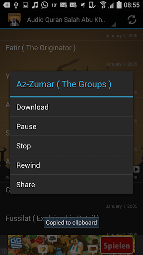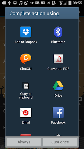 To share audio files, press long, select share to see options.