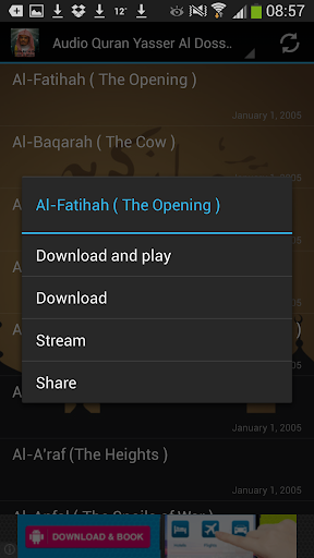 This App contains the complete Qur'an Karim in High Quality MP3 audio by the famous Quran reciter Yasser Al Dosary.