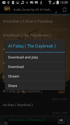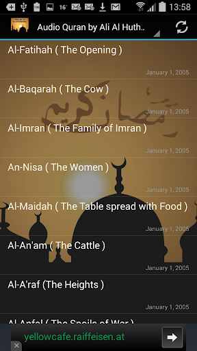 This App contains the complete Qur'an Karim in High Quality MP3 audio by the famous Quran reciter Sheikh Ali Abdur Rahman al-Huthaify