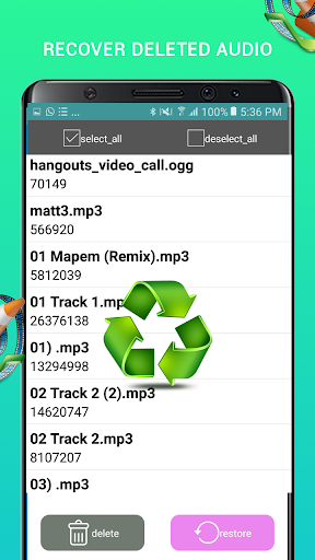 audio recovery app restore deleted audio files from your mobile and recover audio from your mobile . Your data file is safe with this app easily backup and restore audio your phone with a delete audio recover app. audio recovery app can recover your deleted audio which audio accidentally deleted are delete from you. This audio app check the root of deleted audio and than recover this audio.