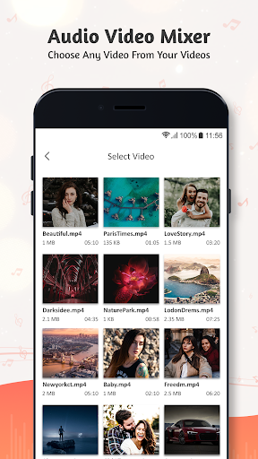. Select a background music for your video, using this video mixer with audio and audio video mixer hd app, or audio video mixer software, which is one of the best audio video mixer apps.