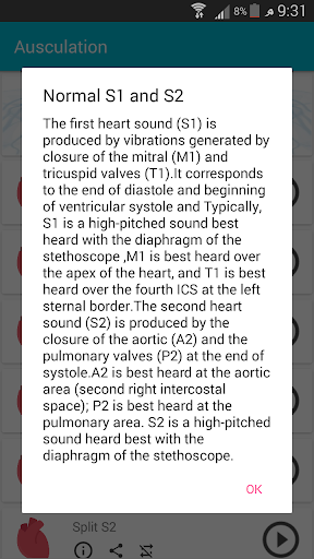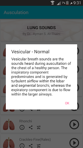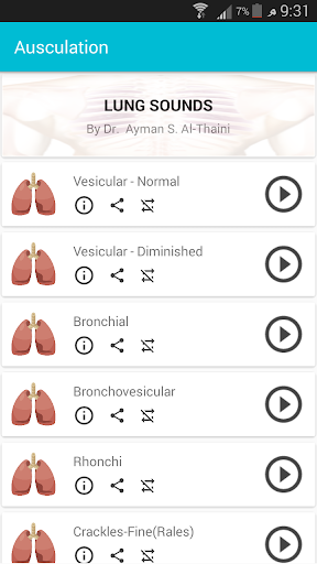 Some lung sounds are not clear or audible. It crashes at times when loop-playing. Please remove those unwanted animations, so the app woud be more stable. Poor UI design. Please add phonocardiograms, with the sounds which could be helpful to understand rather than just inaudible low quality sounds. Needs improvement! Not recommended for medical students.