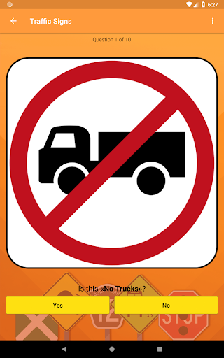 2) The mode «True or False». Test shows an image of a road sign and some sign's name and you must answer True or False.