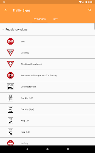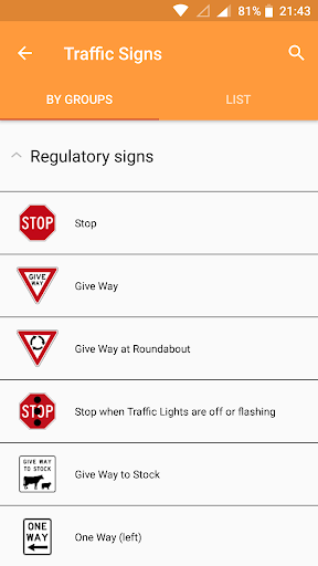 • Useful handbook. It has all traffic signs with a short description which grouped by categories;