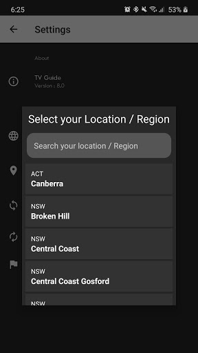 You will be able to filter the channels according to your regions, TV Listing available for Australian Capital Territory (ACT), New South Wales (NSW), Northern Territory (NT), Queensland (QLD), Tasmania (TAS) Hobert, South Australia (SA), Victoria (VIC) Western Australia (WA), Simply select your region upon first launch or change it from Settings whenever you need to.