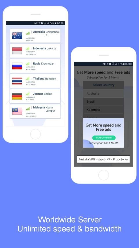 Australia VPN Hotspot - VPN Proxy Server can connect to many proxy servers in many countries around the world, including Australia, Italy, Japan, Canada, United States, Brazil, United Kingdom, Mexico, France, Germany, South Korea, China, Thailand, Indonesia, Vietnam, Taiwan, Malaysia, Singapore, Spain, India, Russia and other countries.