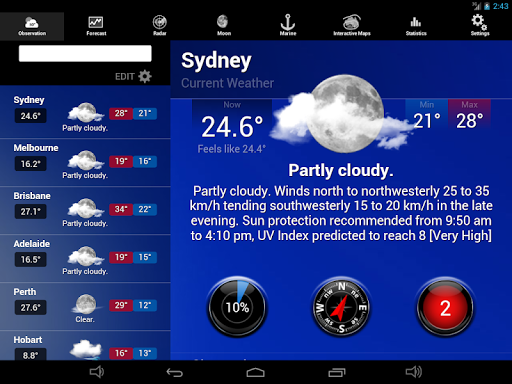 - Exclusive 24 hour forecast graph to show visually the forecast temperature, maximum, minimum, humidity and rainfall.