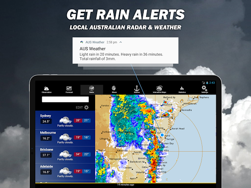 - BOM radar maps. Including rainfall, doppler and national cloud and radar maps.