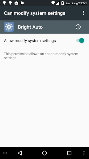 2. Auto save current manual brightness level. If you switch on and off auto brightness again it will stay in the previous level. In some devices it might require permission to modify settings. (If you don't like this feature you can still use old version which link can be found above.)