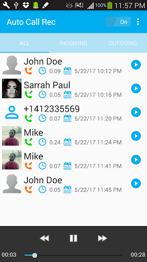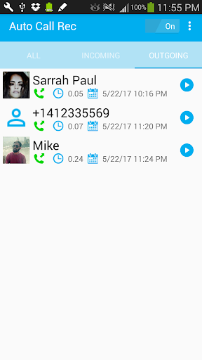 By using Auto Call Recorder, you can automatically record and save any phone call you want. Listen to the recording and share it. You can choose to either record both incoming or outgoing calls or any one of them, it's up to you.