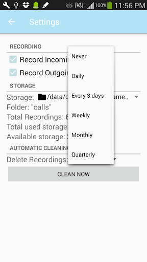 You can set file number limit, size limit or simply delete the calls that are older than one week, month etc. If you decide that a conversation is important, save it and it will be locked. If not, old recordings will automatically be deleted when new calls fill up the inbox.